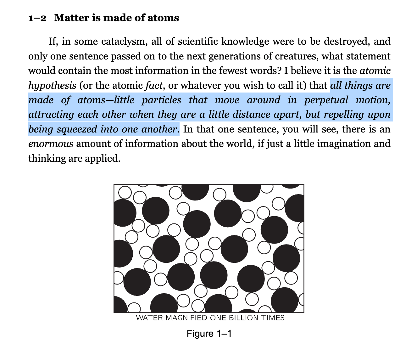 his choice for Physics 101 is atomic theory (smart move)