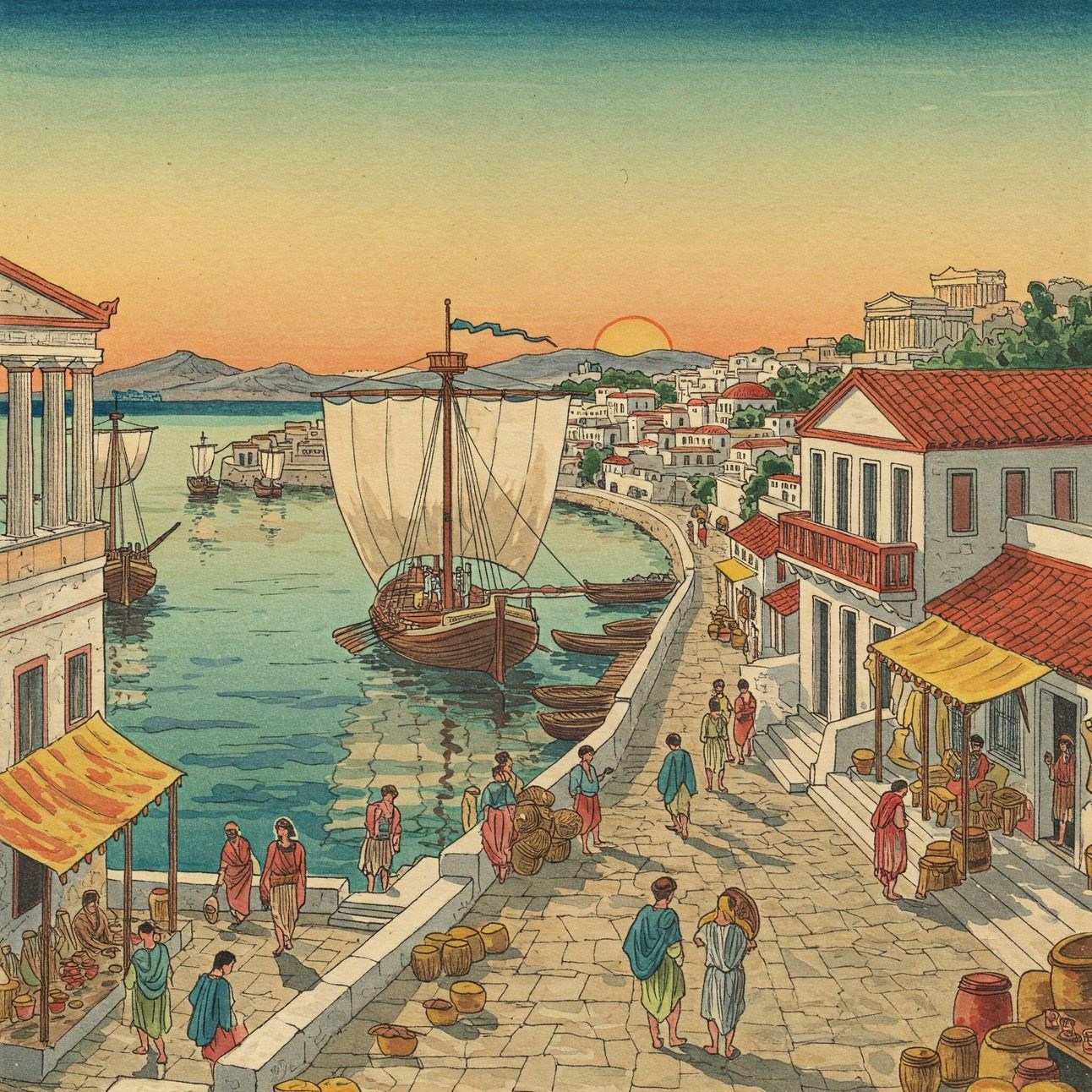 The first information revolution is about to begin, and they find the perfect medium by rubbing shoulders with the fabled Phoenician traders. These seafarers from the Levant, introduced to Greece not only their expensive Tyrian blue dyes, glasswork, and craftsmanship, but their alphabet, the abjad.